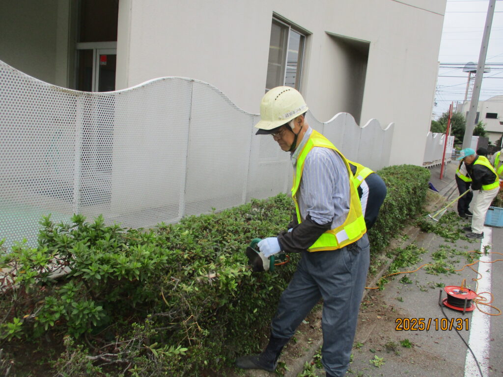 令和7年10月31日に、毎年恒例となっている、にしび創造センターでボランティア活動を開催しました。施設敷地内にて剪定及び除草作業を行いました。